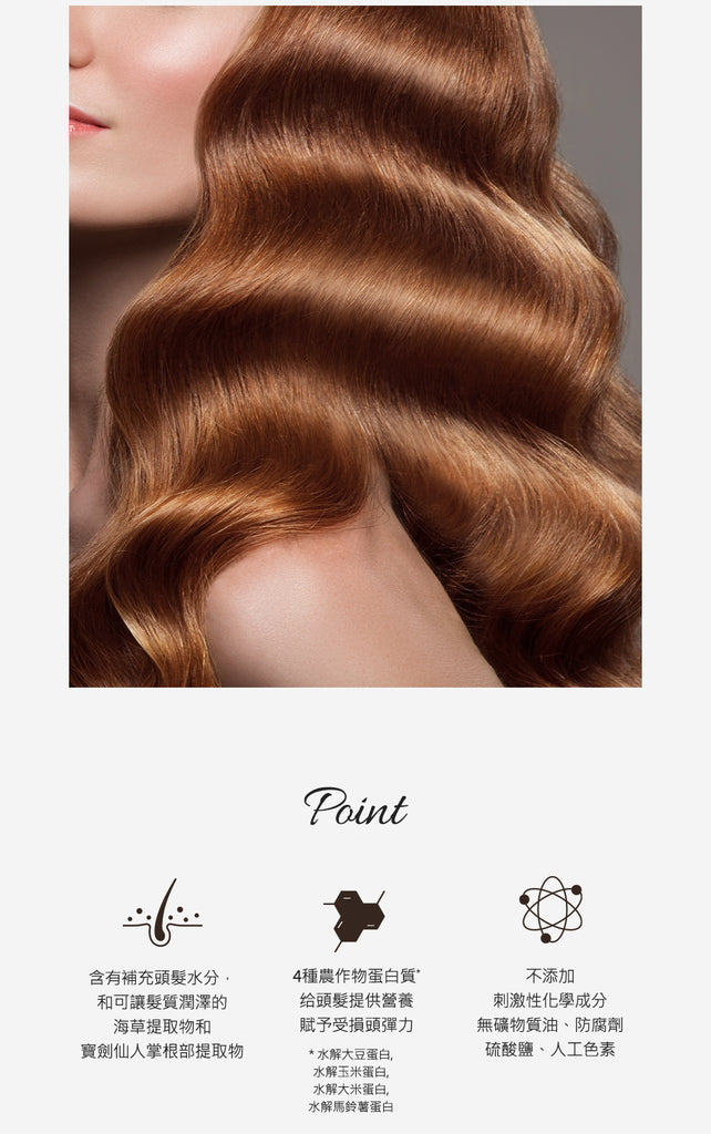 Shampoo for extremely damaged hair with 4 kinds of Real Farm protein and hyaluronic acid ingredients to deliver to the deepest part of the hair for soft and elastic care.
